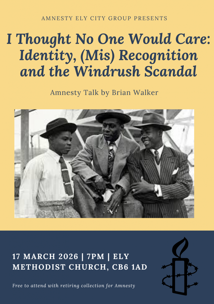 Our next event is the first in our annual Amnesty Talks which will be held at 7pm on Tuesday 17 March in the Ely Methodist Church, CB6 1AD.
